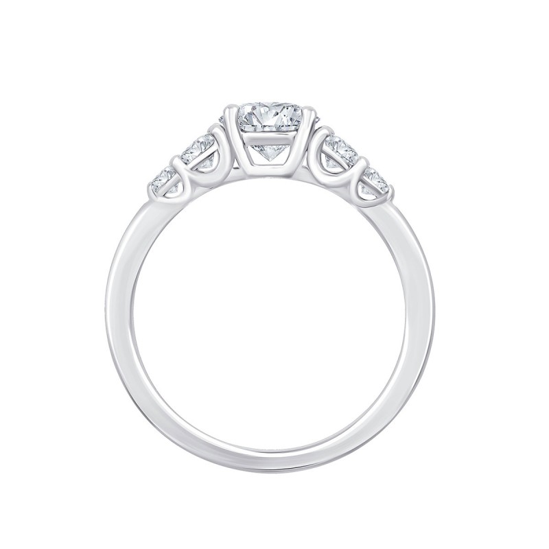 La bague de fiançailles Miss Eïko en or blanc 18 carats et diamant de synthèse est un solitaire épaulé, avec une pierre centrale de 1.00 carat taillée en forme brillant, accompagnée de 4 diamants d'un poids total de 0.38 carat.