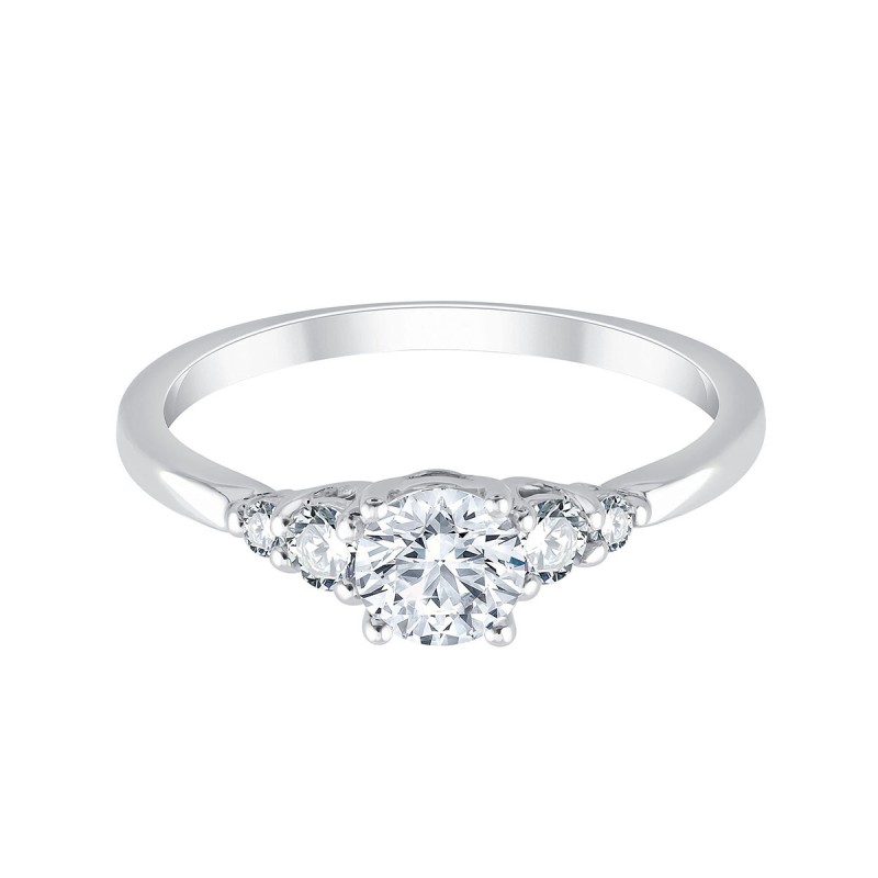 La bague de fiançailles Miss Eïko en or blanc 18 carats et diamant de synthèse est un solitaire épaulé, avec une pierre centrale de 0.50 carat taillée en forme brillant, accompagnée de 4 diamants d'un poids total de 0.21 carat.