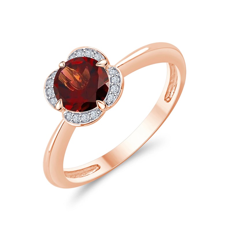 Un Grenat de 6 mm est serti sur une monture en or 750 millièmes et diamants.