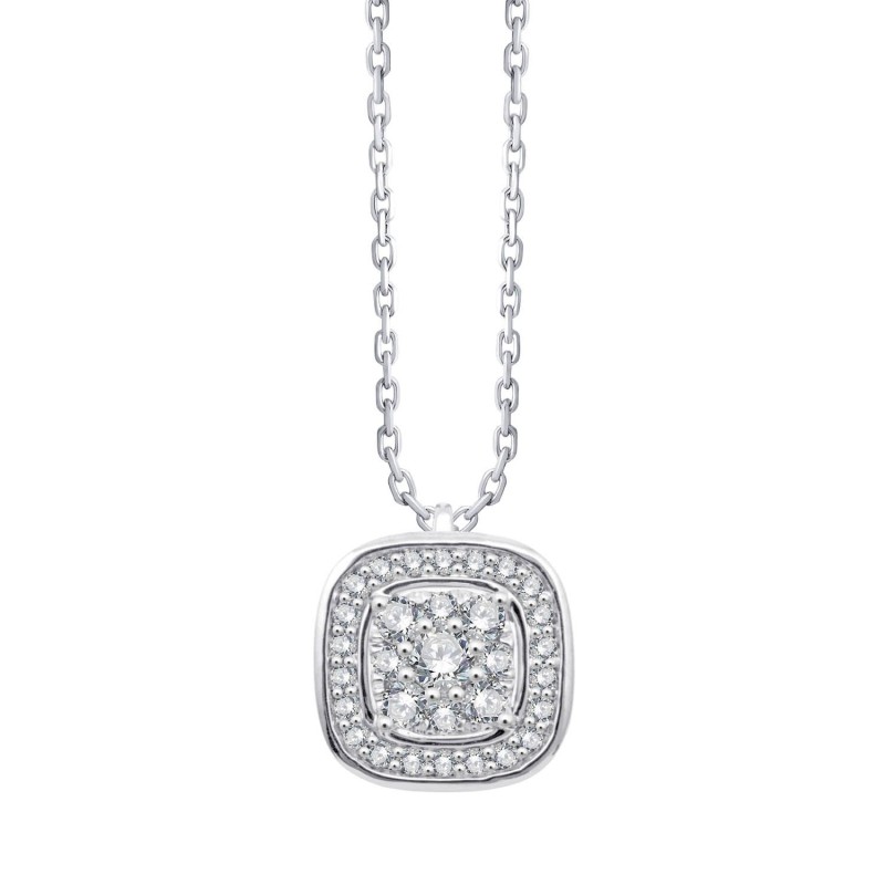Le halo de diamants qui entoure le collier Daya lui apporte une touche d'éclat supplémentaire.